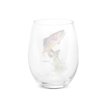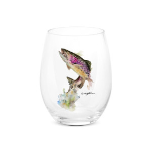 I loved these stemless 15 ounce goblets from the first moment I tried them. Very stable and elegant, each glass is carefully painted with a Dean Crouser Watercolor of a beautiful leaping trout. Perfect for any setting, I really like these for the patio in the summer as they don't easily tip over if someone bumps the table. Call me a snob, but I just don't do fine wine in plastic! Born & raised in Oregon, Dean's love of fishing & the outdoors can be found in his art. When it comes to painting, he tries to keep his work loose & simple. "I am always striving to say the most with the least and like to keep my work loose and spontaneous." This collection features a beautiful leaping rainbow trout on glass, ceramic & metal items that will bring the inspiration of nature into your daily routine.Available as a single glass or a set of 4.