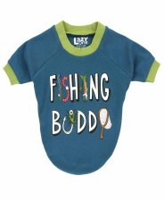Make sure your fishing buddy is ready for your next fishing trip with our Fishing buddy dog shirt. This dog shirt features a funny fishing design perfect for any fishing adventure. Made with 100% combed cotton giving your dog comfort while making them even cuter! This dog shirt goes great with our asleep at the reel matching collection.